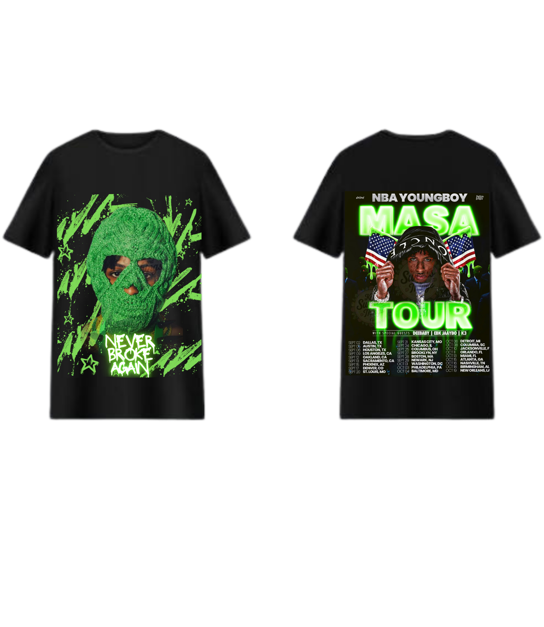 Step into the spotlight with the exclusive Custom NBA Youngboy MASA Tour Tee — inspired by the energy and style of the MASA era. Designed for true fans, this shirt blends comfort, creativity, and concert-ready fashion.